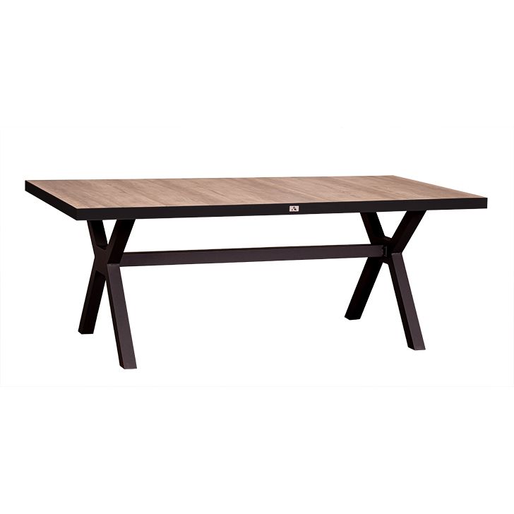 Das pulverbeschichtete Aluminiumgestell in Dark Anthracite verleiht dem Tisch eine zeitlose, elegante Optik und sorgt gleichzeitig für Stabilität und Langlebigkeit. Abgerundet wird das Design durch eine edle Keramik-Tischplatte in Oak-Optik, die natürliche Wärme mit moderner Ästhetik verbindet.