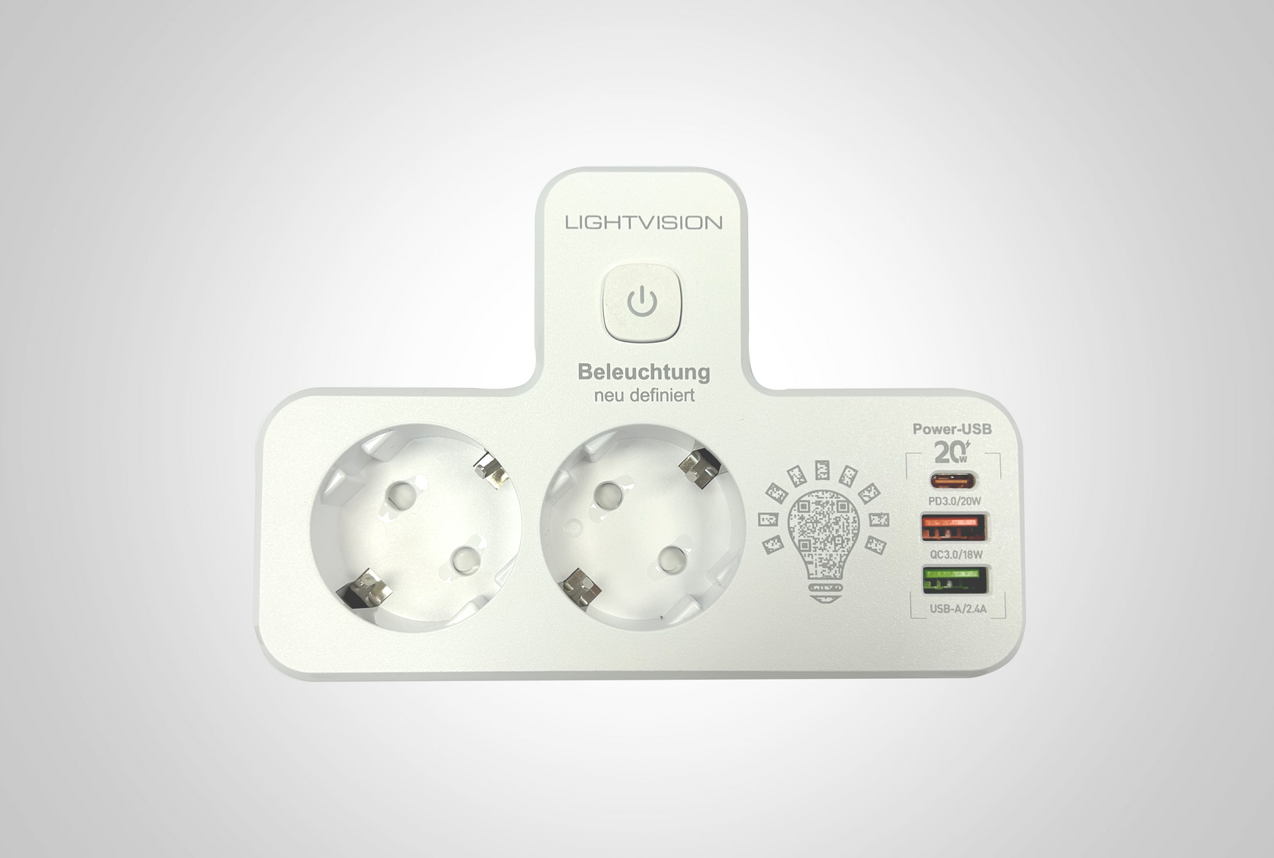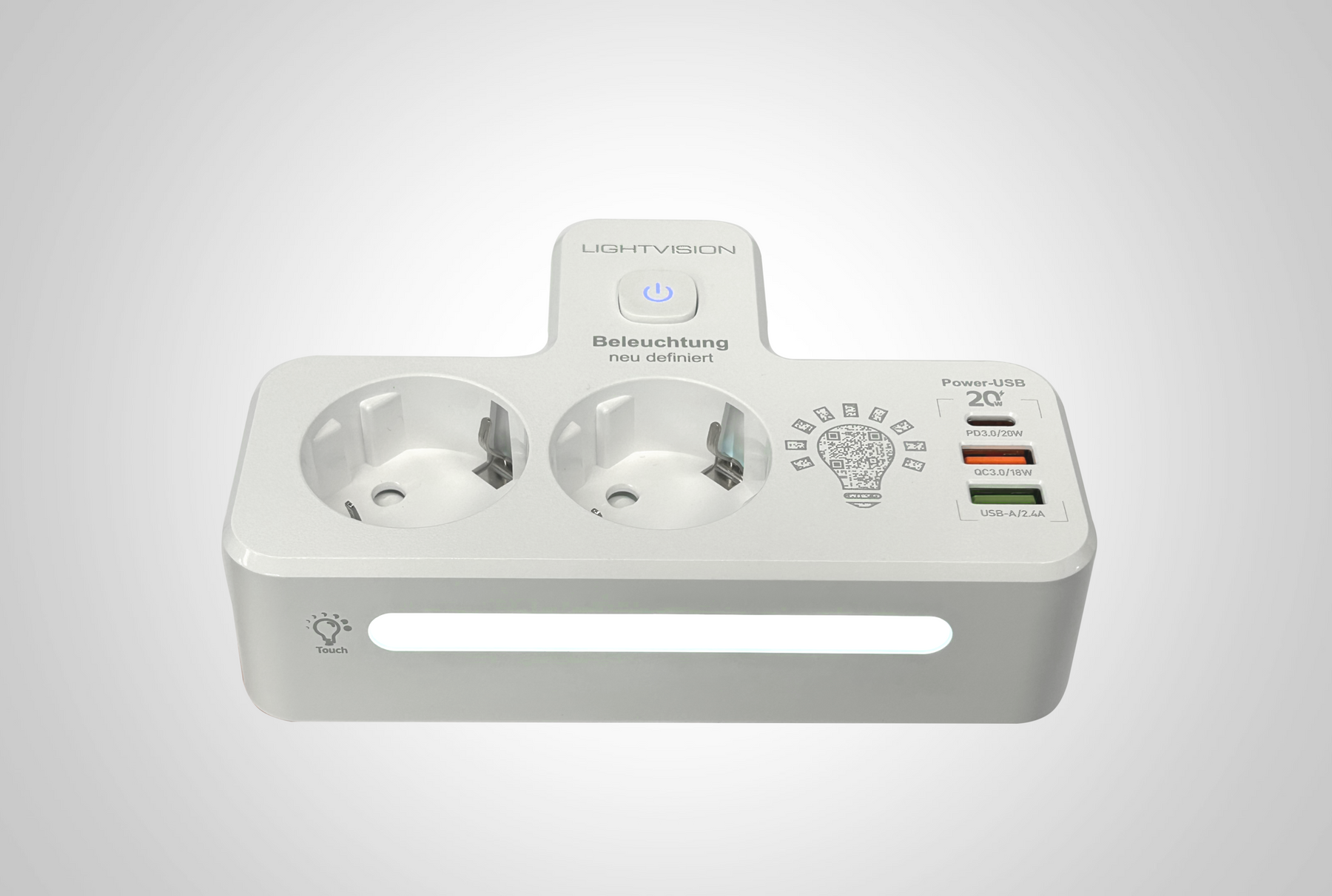 Universal Doppelsteckdose mit 3x USB-Anschluss und dimmbarer LED-Lichtschiene