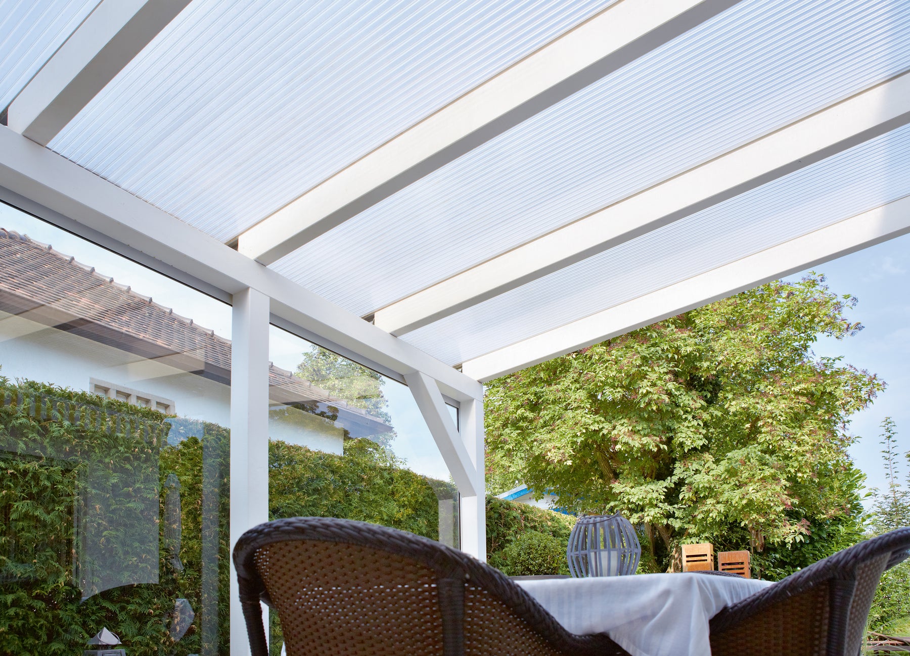 Langlebig, transparent, einfach zu verarbeiten, schlagfest und dabei UV- und witterungsbeständig: Gerade als Bedachungsmaterial punktet Polycarbonat mit zahlreichen Materialvorteilen. Mit unseren Hohlkammerplatten aus Polycarbonat (PC) können Sie kreative Gestaltungen rund um Ihr Zuhause sicher und einfach verwirklichen. Ganz gleich ob Terrassenüberdachung, schützendes Carport, Gartenhaus oder Hauseingang, mit den Hohlkammerplatten von Gutta setzen Sie optisch und ästhetisch überzeugende Akzente.