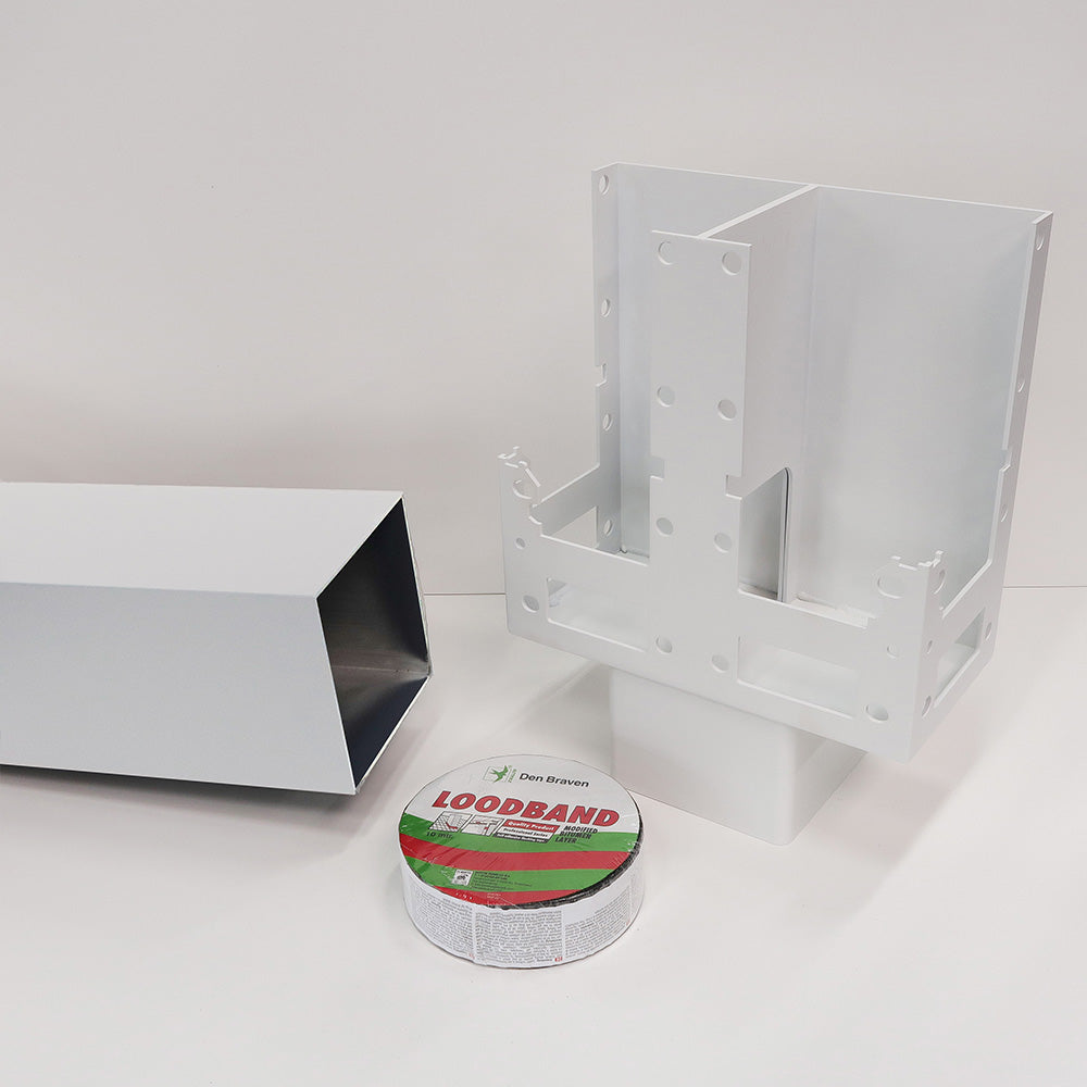 1x Kupplungsteil für 2 Systeme1x Pfosten 150x150x3200mm1x Bleiband 50mm x 10 Meter