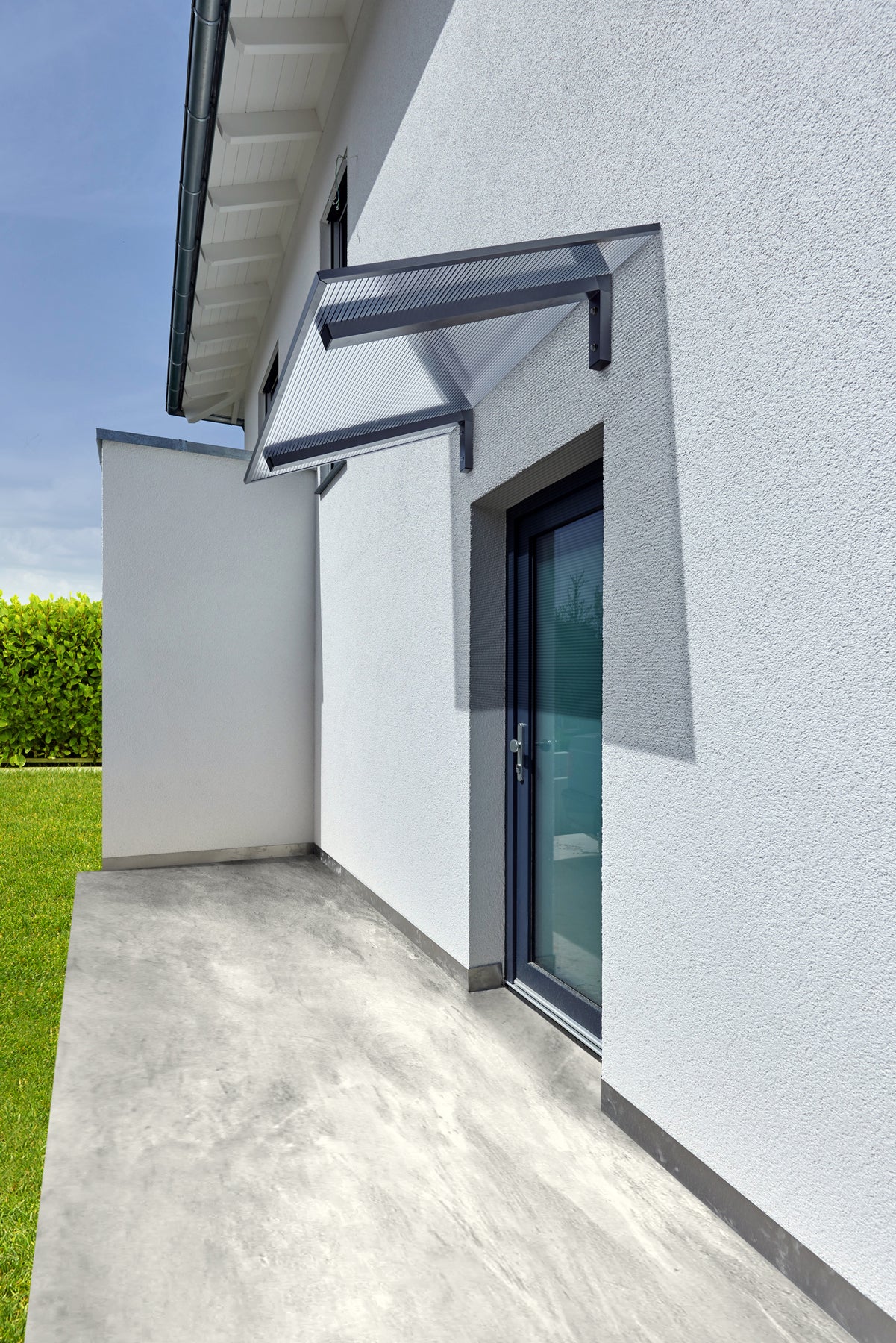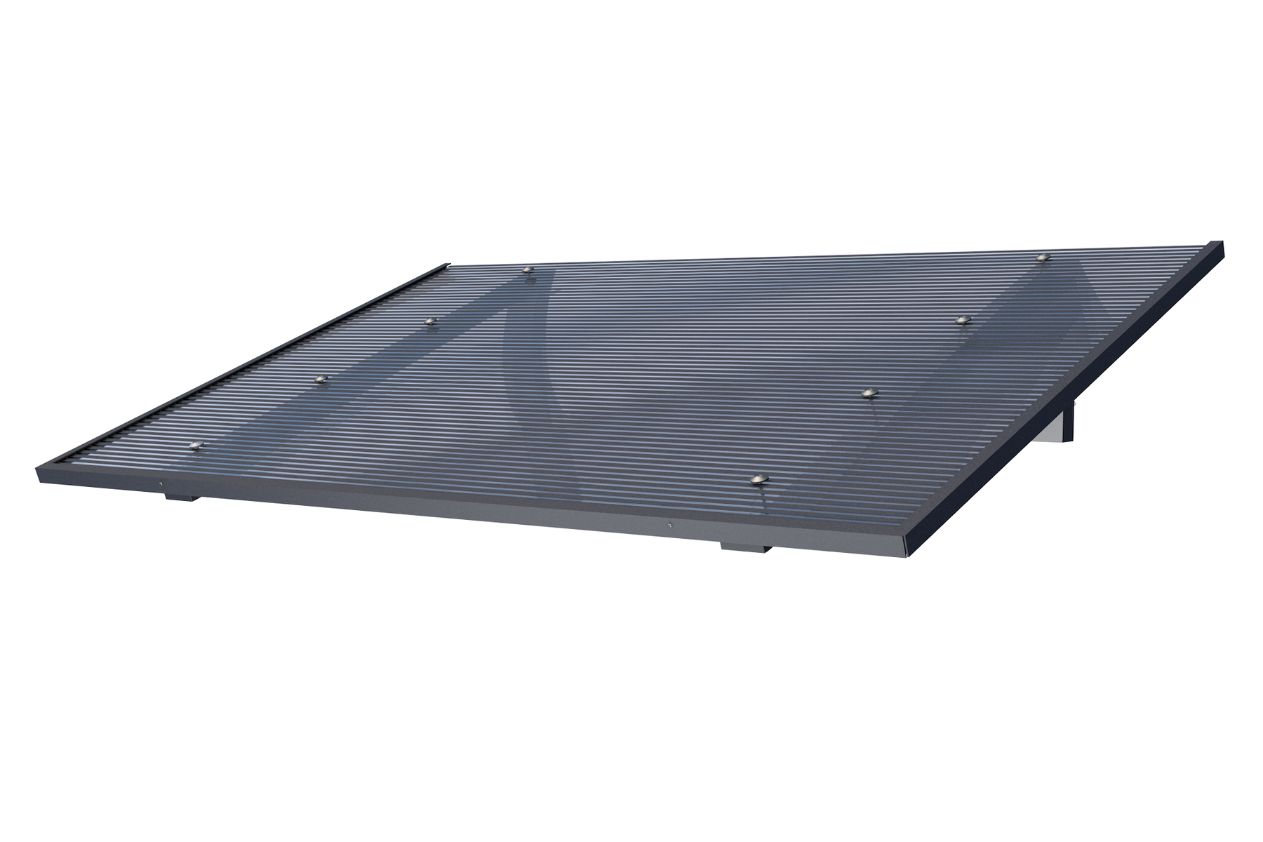 Pultvordach Bielefeld mit 16 mm Polycarbonat Stegplatte klar/anthrazit Zebraplatte